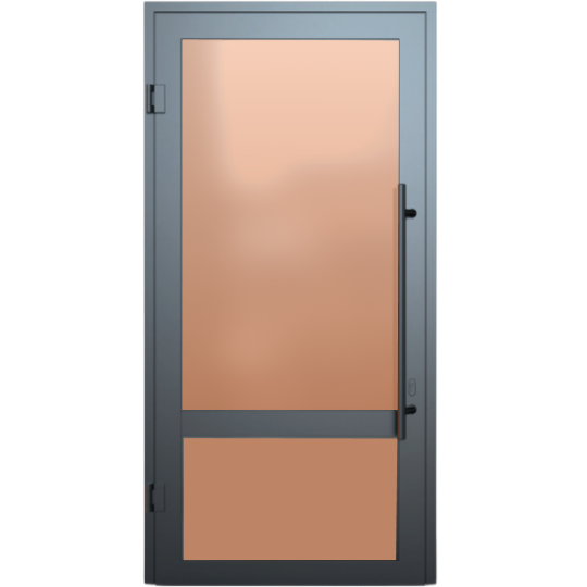 Противопожарная однопольная светопрозрачная стальная коричневая дверь EIW 30 с ручками во всю высоту